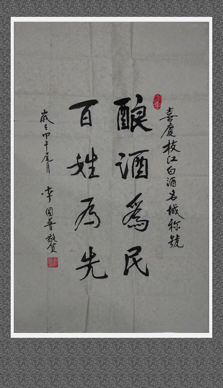 3月17日,枝江酒业宣传部收到曾在枝江任职的老县长李国普寄来的书法作品,“酿酒为民,百姓为先”、“紧盯老字号,客人满天下”。苍劲有力的…
