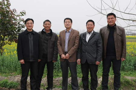 枝江酒业董事长蒋红星(左一)、党委书记张华(左三)与泰洲村支书王明星(左二)等村委 合影留恋 3月11日,枝江酒业董事长…