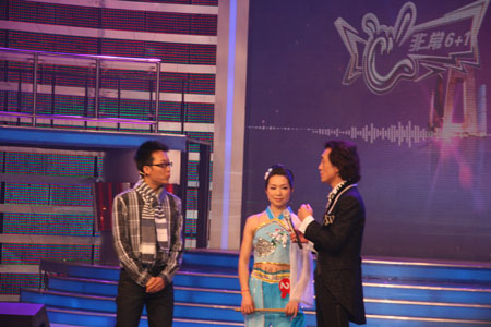 舞台上的张翠华、李玉刚和李咏 3月21日晚,枝江酒业员工张翠华顺利通过央视“非常6+1”节目的现场录制,于22日下午回到枝江。在公司同…