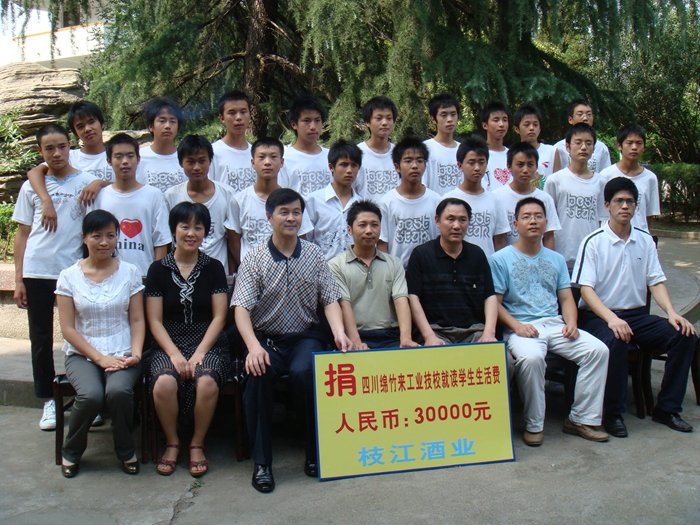 本报讯(通讯员 蔡 兵)6月25日,枝江酒业资助20名绵竹灾区学生捐款仪式在宜昌市工业技工学校会议室举行,该公司工会主席杨家法将3万元捐款递…