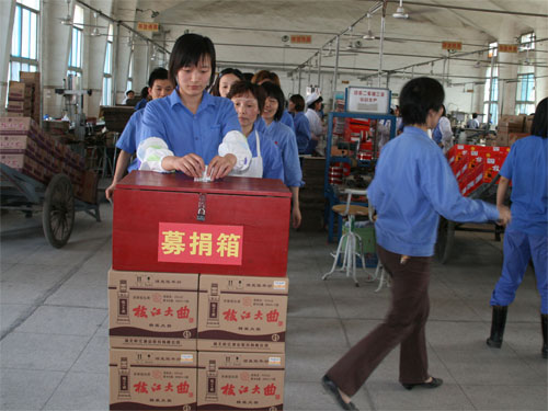 5月13日,枝江酒业公司工会向全体员工发出向四川震区灾民献爱心的倡仪,公司员工纷纷慷慨解囊,短短两天就已收到捐款25万元,其中公司董事长…
