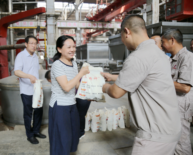 三伏盛夏,热浪侵袭。8月2日,市政协党组书记、主席黄丹梅来到车间,为奋战在一线的酿造和搬运工人送来沐浴露、洗手液、洗衣液、毛巾、牙膏等…
