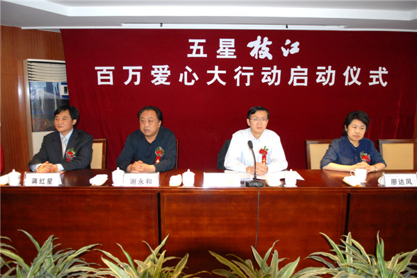 “五星枝江百万爱心大行动”5月15日在宜启动由宜昌市慈善总会、宜昌市民政局、宜昌市教育局、宜昌市工商局和枝江酒业股份有限公司共同主办的…