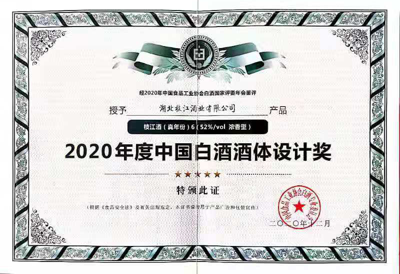 近日,在2020年白酒国家评委年会上,“52%vol枝江真年份6”凭借窖香幽雅,粮香舒适,陈香突出,绵甜柔顺,回味悠长的卓越品质脱颖而出,以优…