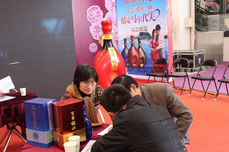 在枝江酒业展厅里,前来咨询洽谈的人群络绎不绝。既有手拉手逛婚博会的小情侣和准新人,也有替子女置办婚礼用品的白发伉俪,甚至还有来自省内咸宁、黄冈、洪湖等其他地区的消费者。短短半小时内,百年枝江楚之韵已成交数十单。一位来自襄阳的消费者介绍说,本来自己是到武汉办事,在襄阳车站看到百年枝江的广告,就想到子女的婚事,特意来选购百年枝江酒。工作人员在详细介绍了相关政策后,主动提出通过物流将货物送到其指定的地点。这位大叔听完介绍,兴奋地拉着工作人员办完了下单手续。