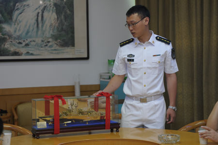 在随后举行的座谈会上,任洪亮代表中国海军“宜昌舰”全体官兵向枝江酒业赠送了最新的564“宜昌号”导弹护卫舰模型。他感谢枝江酒业对“宜昌舰”多年以来的关心和支持,希望双方进一步加深友谊,促进军企共建发展。蒋红星说,作为宜昌市爱国拥军的模范企业,早在2001年,枝江酒业就与海军“宜昌舰”签订了军民共建协议,在共建活动中,也曾亲临“宜昌舰”,体验了官兵生活。对海军官兵长年坚守岗位、护国卫家,为人民安居乐业、企业安定发展保驾护航表示由衷的感谢和崇高的敬意。同时,他表示,枝江酒业也将继续做好对中国海军“宜昌舰”的服务工作,建立和谐的军企军民关系。
