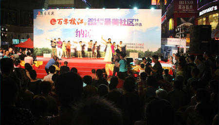 8月2日晚,由枝江酒业独家冠名、宜昌市文明办、三峡晚报等单位联合举办的宜昌市第二届“最美社区”评选之首场纳凉晚会在宜昌市时代广场步行街盛大启幕。在2个小时的晚会上,专业演员、民间达人和普通群众轮番亮相,共同演奏了一曲既高大上,又接地气的“夏日市井交响乐”。表演过程中,不时有枝江酒业提供的竞猜奖品送出,居民们参与互动的热情很高。