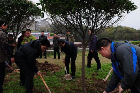 3月19日,由枝江酒业总裁曹荣开带队,总经理陈洪卫、党委书记张华等高管及部分员工代表到百里洲镇进行义务植树活动。百里洲镇被誉为“万里长江第一洲”,是全国少有的农业大镇,以其独特的地理位置在全国有较高的知名度。特别是近几年火热的环岛自行车比赛,吸引了不少外国朋友的参与,已经成为自行车爱好者的乐园。为支持百里洲做好绿化、亮化和美化工程,枝江酒业积极参与其中。枝江酒业总裁曹荣开表示:栽下一棵树,是为了结下三分缘,结一分“绿满荆楚”的缘,结一分为“城乡一体、四化同步”添新绿的缘,结一分融入大自然的缘。百里洲镇在抗洪广场周边规划了“义务植树林”,枝江酒业在规划的区域植下9棵树冠饱满圆润、分支点在1.6米以上、米径10米以上的桂花树。