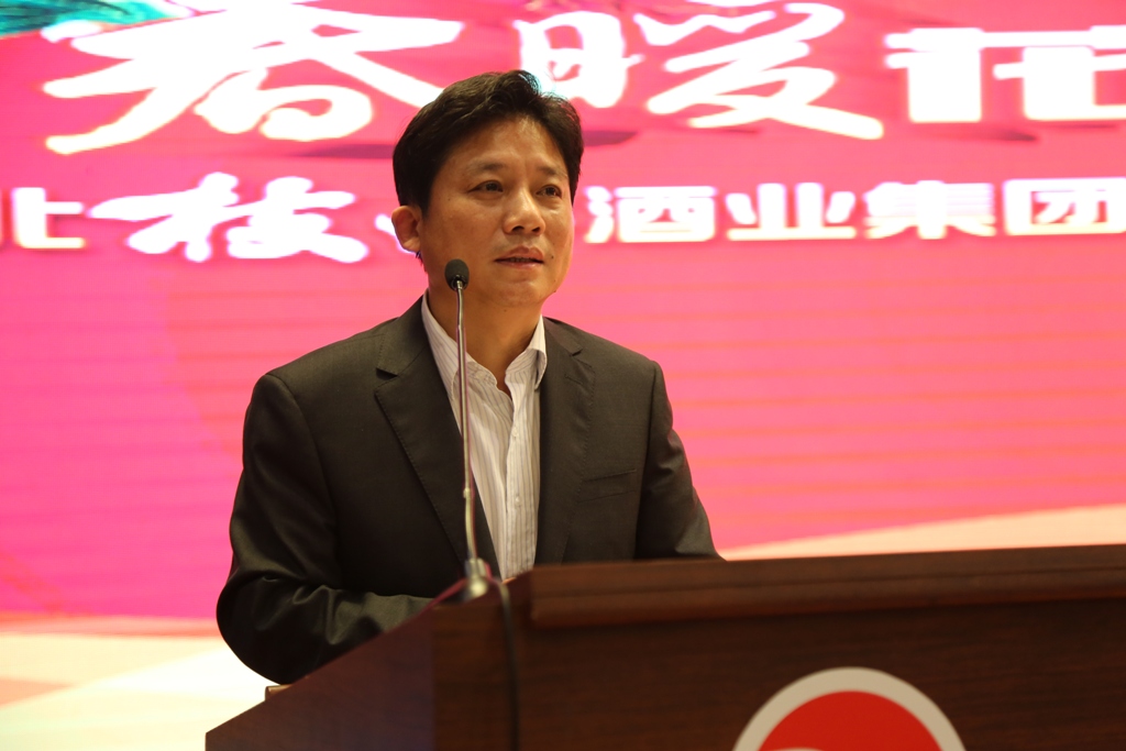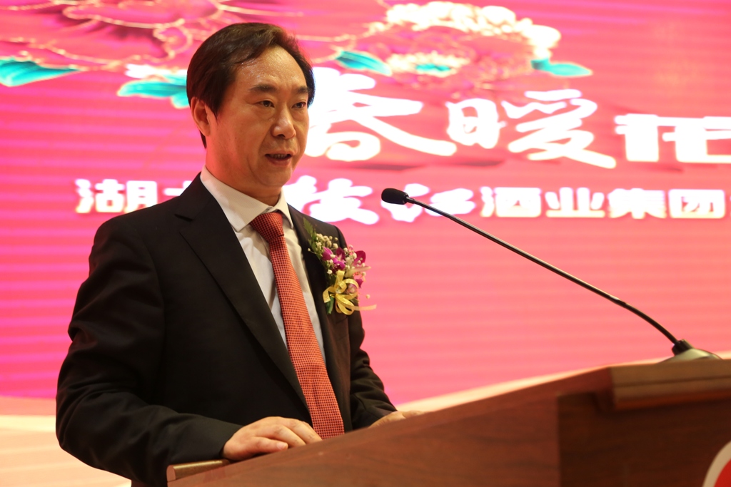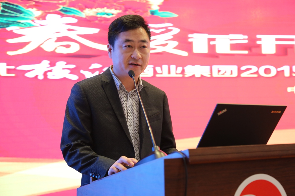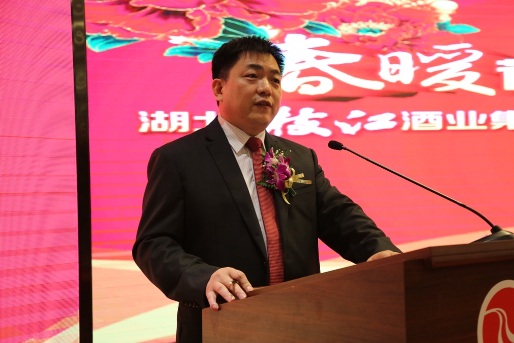 枝江酒业总经理陈洪卫在大会上做了《春暖花开,共赢未来》的主题报告。他在报告中总结销售工作取得的成绩,枝江酒业市场及产品结构经过近三年的调整,已经形成产品层次定位分明、市场区域布局合理、奖惩制度兑现及时、营销机制不断创新的良好局面。从以前按区域划分销售管理范围调整为按产品划分,形成了王级、普酒、百年、健康四大事业部,以县级市场为基础,大力实施“百城万店”工程。确定了销售人员的计划目标、客户目标以及理想目标。调整后的四大事业部,确立的三大目标,为枝江品牌新一轮的发展奠定了非常好的基础。2015年,枝江酒业集团的白酒主业主要经济指标将比上年增长20%以上,集团计划实现总收入150亿元。围绕这个总体目标,枝江酒业将以“中国白酒名城”为依托,抓好改革创新与经营升级。陈洪卫要求全体厂商队伍,要做好“狠抓基础建设、深化组织变革、优化厂商模式、调整营销策略、推动创新发展”等五个方面的工作。