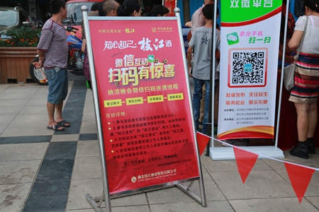 8月11日,枝江城区五柳公园继续进行微信扫码赠酒体验活动,吸引了更多的人前来参与。枝江酒业在活动现场增加了工作人员,做好微信分享验证工作的服务,同时新增了苦荞酒展示。在一天的酷热之后,枝江城区居民出门纳凉,信步于五柳公园,体验微信扫码赠酒,脸上露出开心的笑容。而老百姓脸上的开心笑容是一座城市最美的表情。
