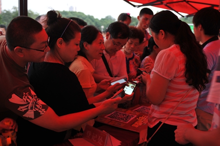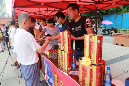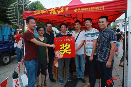 8月12日,美丽的枝江五柳树公园广场,枝江酒业倾情回馈市民、微信扫码赠酒体验活动仍在继续。经过两天的实惠体验,市民的参与热情急剧升温,下午5点,距离活动开始还差一个半小时,活动展台前就排起了长队。为增加活动的趣味性、多样性,活动现场新增了拼手气环节,活动奖品也更加丰富,参加活动的市民凭手气在情义结、小金版、小苦荞三款产品中任意抽取奖品。新增的环节让市民兴趣更高,抽奖台前一度出现秩序混乱。热闹的现场,前来购买枝江酒的消费者十分踊跃,在近几天的活动中,展位上分别售出了谦泰吉、百年枝江楚之韵感恩版、小方瓶等产品。在活动现场,播放的枝江酒业新出品的歌曲——《酒城之恋》吸引了不少广场舞爱好者和交谊舞爱好者,纷纷前来拷贝歌曲文件,他们表示,要将《酒城之恋》跳成枝江市的样板广场舞。