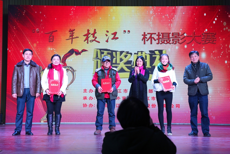 12月11日, “百年枝江杯”摄影大赛颁奖仪式在枝江大礼堂隆重举行。本次“百年枝江”杯摄影大赛以“锦绣枝江,醉美映象”为主题,面向全市共征集了反映枝江经济发展、社会和谐、文化繁荣、环境优美的摄影图片1200余幅。经过初评、复评和专业老师评定,谢华的《奔向春天》荣获大赛一等奖,陈艳玲的《喜在心头》、迟肇秦的《掀起你的盖头来》、余丹丹的《毛奶奶和她的孩子们》荣获二等奖,罗发林的《建设者》组图、尹雅的《村村通客车》组图、张同的《过年了》、唐万钰的《酒坊飘香》组图、王继红的《丰收调》组图、望作信的《中外游客聚枝江》、李学武的《诗画葡萄园》和黄晨晨的《初雪》荣获三等奖。百里洲镇、七星台镇、仙女镇、安福寺镇、顾家店镇、董市镇、马家店街道、市城管局、市住建局、市国土局、市卫生局、市交通局荣获大赛组织奖。