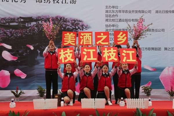 3月12日,由枝江酒业独家冠名的第十五届三峡·枝江桃花艺术节在美丽的玛瑙河畔、东方花谷隆重举办,枝江酒业总裁曹荣开代表公司3000多名干部职工对桃花节的隆重开幕表示热烈的祝贺。