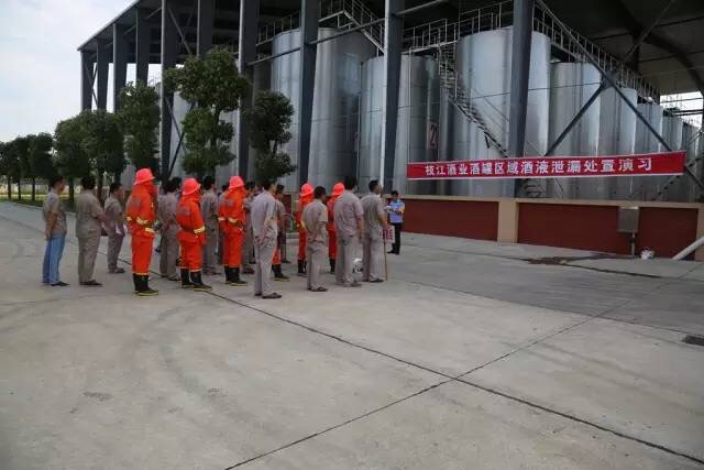 随着一声令下,现场警戒组、管道堵漏组、沙袋堵漏组、射水稀释组进入罐区展开应急处置……6月23日上午8时30分,一场紧张有序的酒罐区域酒液泄漏处置演习在枝江酒业五万吨灌装中心举行。此次演习旨在提高酒库员工对酒体泄漏的应急处置能力,检验公司微型消防站战斗人员的实战技能,增强全员安全意识。