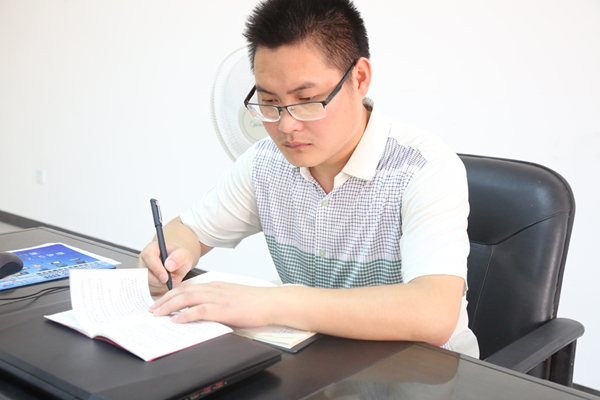 包装三车间主任张继生,2005年入党。“学习,永无止境。”