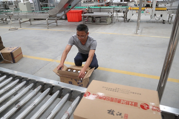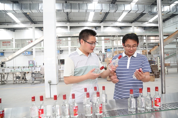 包装调度安鹏程(右),2011年入党。“在枝江酒业加入党组织,一直心怀感恩。”