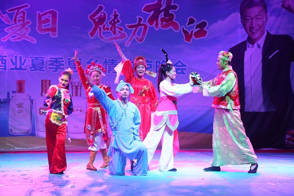 7月28日,枝江酒业“动感夏日 魅力枝江”乡村行之情满问安文艺汇演在问安金泉广场举行。精彩的文艺节目,有趣的互动游戏,吸引了前来纳凉的问安群众。“枝江酒作为与枝江这个地名同名的本地品牌,不断发展壮大期间,始终立足于枝江,与家乡人民同辉煌共患难,同时更是得到了政府和家乡人民的大力支持。浓浓家乡情 回报桑梓心,今天,为了回馈家乡父老,枝江酒业人不仅为大家带来了好看的文艺节目,同时也为大家带来了各种福利,希望在这个炎炎夏日为您带来一丝清凉” 随着主持人的开场白,纳凉晚会正式拉开序幕。