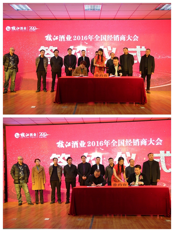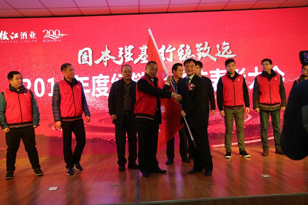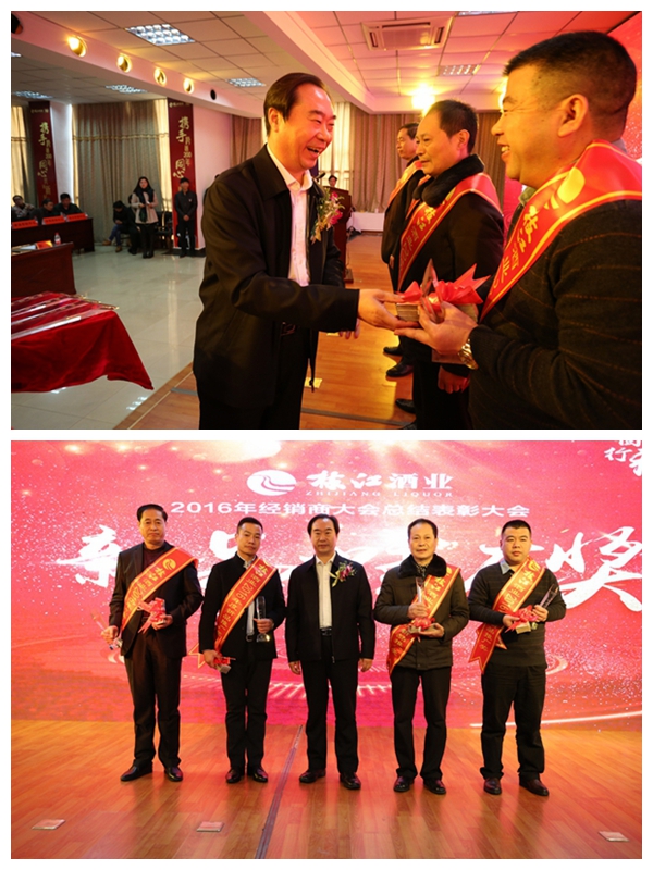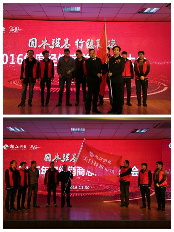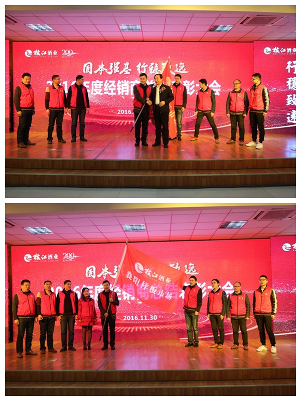 2016年是枝江酒业伴随行业发展变化而深度调整的一年,是面对压力克难奋进的一年,是厂商协力稳步向前的一年,也是枝江酒业实施大单品战略的第一年。2016年在厂商共同努力下,全国各地涌现出了一批贡献突出、成长迅速、转型发展、推新绩优、精诚合作的经销商代表,通过销售财务的数据对比和全面评估,经公司研究决定,授予邓州福泉商贸有限公司等四家单位为2016年度突出贡献奖;授予枝江市新富贵酒行等四家单位为2016年度新品推广奖;授予安陆市昌盛名酒商行等四家单位为2016年度精诚合作奖;授予武汉市蔡甸区本来副食商店等四家单位为2016年度营销转型奖;授予桐柏金达贸易有限公司等四家单位为2016年度高速成长奖。