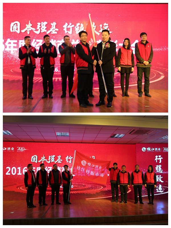 表彰大会上,还对孝感、襄阳、宜昌、天门、枝江五个样板市场进行授旗。同时进行了2017年度核心客户合同签约。