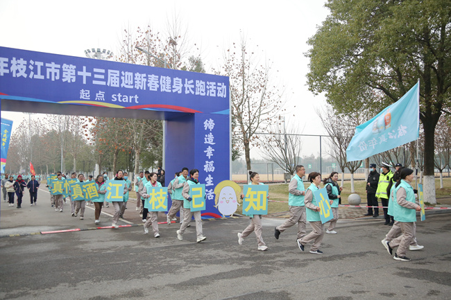 普及全民健身,缔造幸福生活。12月28日上午8:30分,枝江市第十三届迎新春健身长跑活动在枝江市文体中心鸣枪开跑。枝江酒业组织100名干部职工高擎真年份大旗,统一着装,迈着矫健的步伐,以饱满的热情,奋勇争先,在畅快淋漓的奔跑中喜迎充满无限希望的2024新年到来。